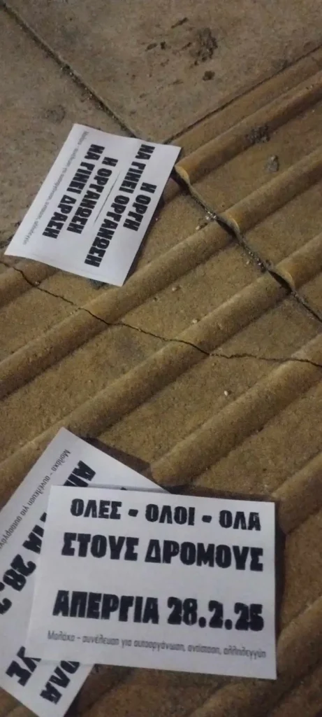 Από το Αιγαίο και τον Έβρο, µέχρι τα Α.Τ., τους δρόµους και τους χώρους εργασίας η κρατική [αντι-] µετα- ναστευτική πολιτική κακοποιεί και δολοφονεί. Όπου όµως δεν φτάνουν τα όπλα των λιµενικών και των µπάτσων, όπου δεν επαρκεί ο mainstream καθηµερινός ρατσισµός και εθνικισµός των ΜΜΕ, όπου τα αφεντικά δυσκολεύονται να εφαρµόσουν συνθήκες γαλέρας, αναλαµβάνουν τα φασιστοειδή. Οι θρασύ- δειλες αυτές επιθέσεις, πέρα από το να ικανοποιούν το αίσθηµα τάξης και ασφάλειας ενός εκφασισµένου κοµµατιού της κοινωνίας, συµβάλλουν στην πειθάρχηση, την πιο άγρια εκµετάλλευση και εξαθλίωση του πιο υποτιµηµένου εργατικού δυναµικού και κατ’ επέκταση όλων µας. Η κρίση βαθαίνει και ο καπιταλισµός δείχνει την πιο απάνθρωπη πλευρά του αφήνοντας στην άκρη το κοινωνικό του προσωπείο. Από τα Τέµπη και την Πύλο µέχρι τα εργοτάξια πολυκατοικιών σε χλιδάτες περιοχές (την Τετάρτη 12/03/2025, 28χρονος εργάτης, σκοτώθηκε στη Βούλα από ηλεκτροπληξία κατά την εκφόρτωση υλικών σε οικοδοµή) και την Ηλιούπολη (κύκλωµα trafficking / πρόσφατες οµοφοβικές επιθέσεις) φαίνεται πόσο ευάλωτοι/ες/α και αναλωσιµές/α/ες είµαστε. Η ρατσιστική, ταξική και πατριαρχική βία είναι εκφάνσεις του κοινωνικού πολέµου που διεξάγεται απέναντι µας.