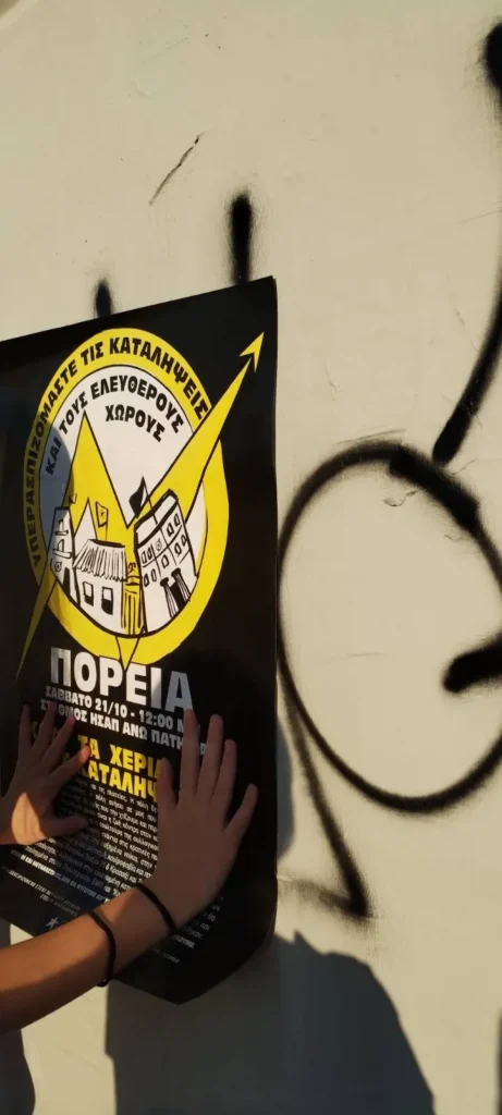 Οι καταλήψεις και οι ελεύθεροι χώροι είναι η ζωή κόντρα στον καθημερινό θάνατο που μας επιβάλουν. Γιατί εκεί συγκρούεται η κουλτούρα της συλλογικοποίησης με την κουλτούρα της ιδιώτευσης. Εκεί οργανωνόμαστε ενάντια στις κρατικές πολιτικές, στον εξευγενισμό, στις περιφράξεις, στην ακρίβεια, στα αυξημένα νοίκια, στην τουριστικοποίηση και στην καταστολή. Για έναν κόσμο χωρίς ρατσισμό, κουϊροφοβία και πατριαρχία.